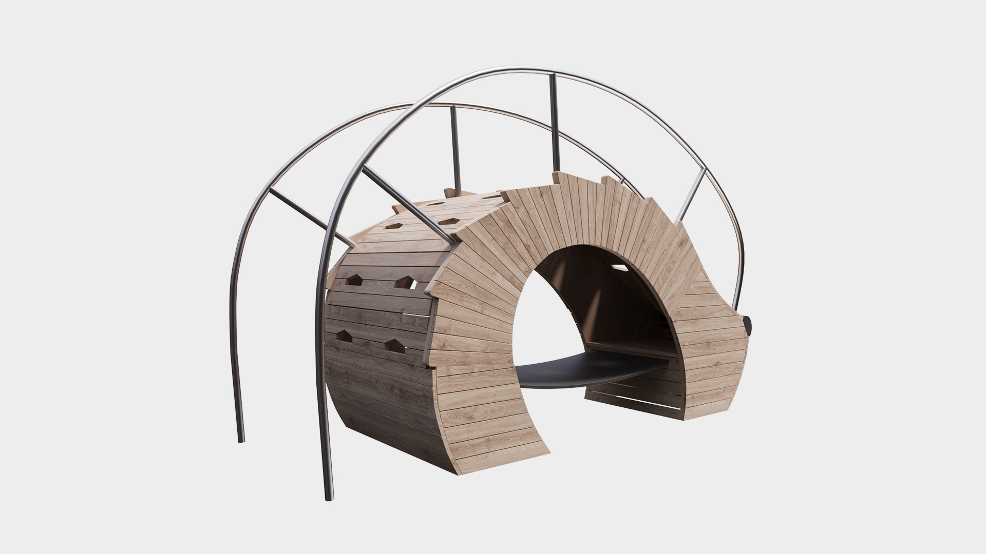 Bu model, siteye doğal bir görünüm kazandıran ve modern bir manzaraya uyumlu bir şekilde uyum sağlamasını sağlayan yeşil vurgulu klasik bir renk şemasında mevcuttur. “Hedgehog”, premium segmentin estetiğini ve işlevselliğini vurgulayarak konut komplekslerinde ve park alanlarında kullanım için idealdir.
